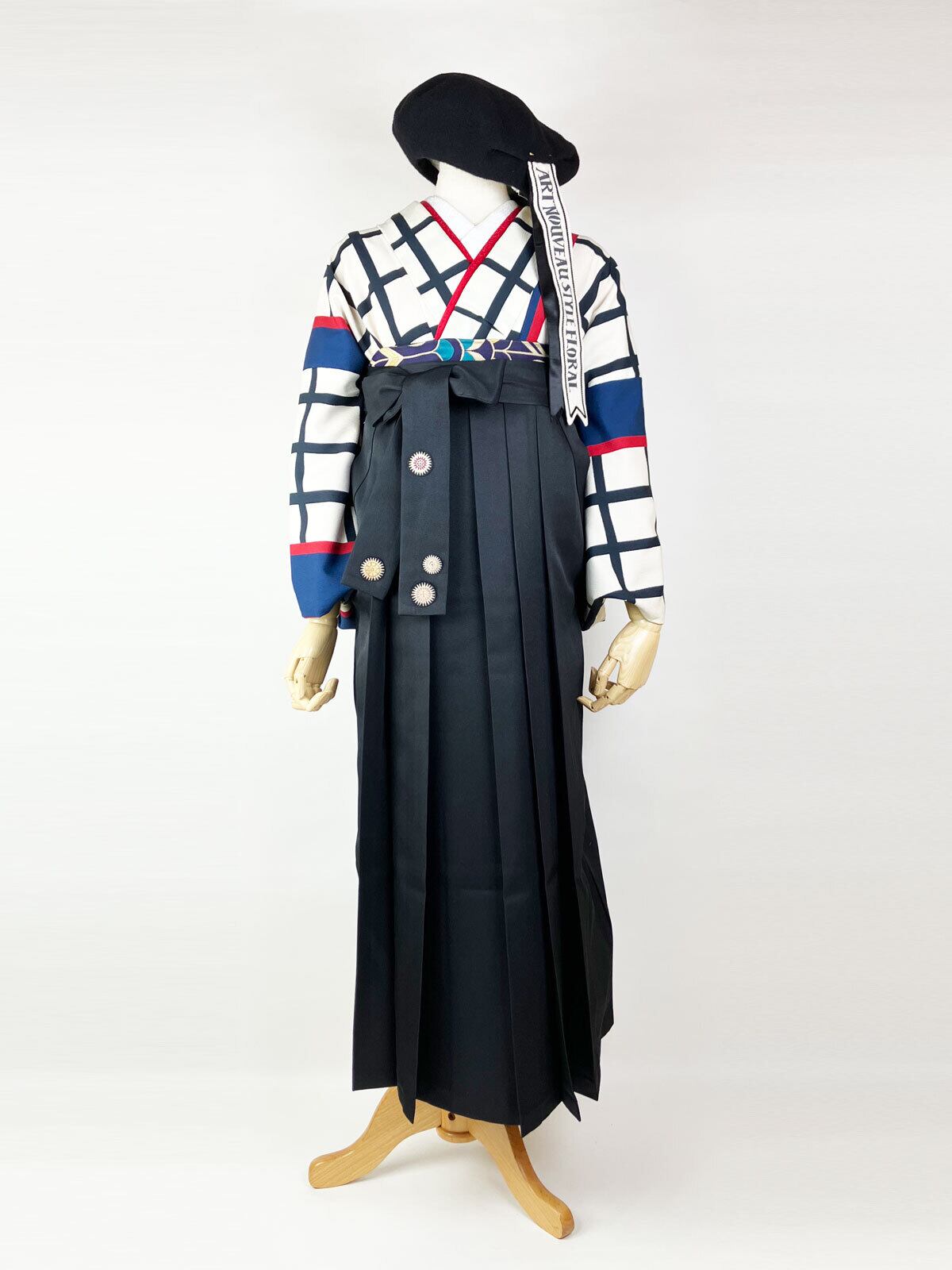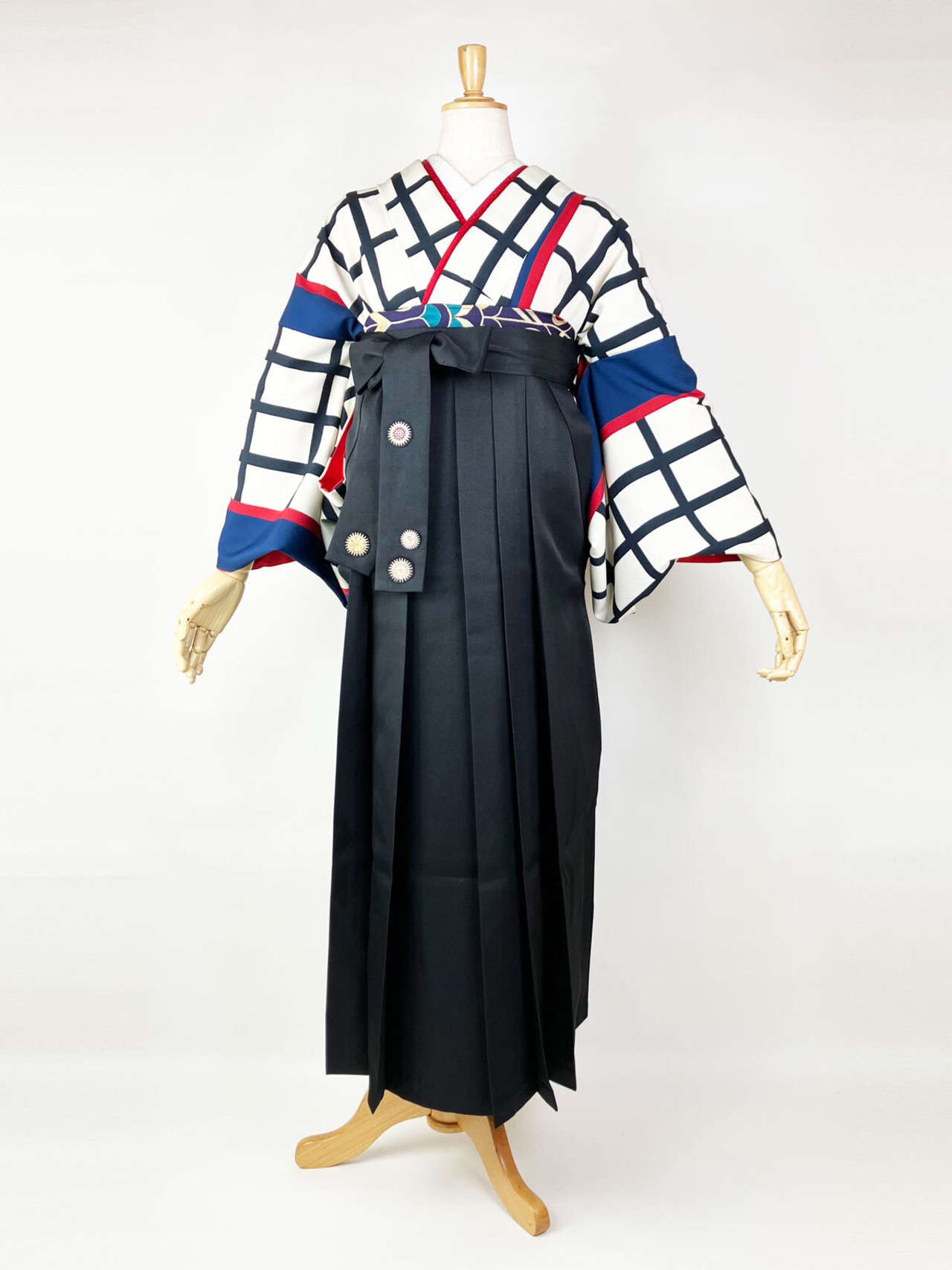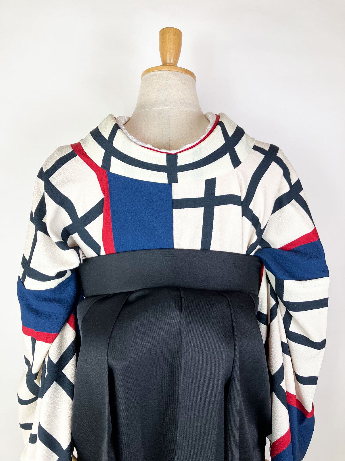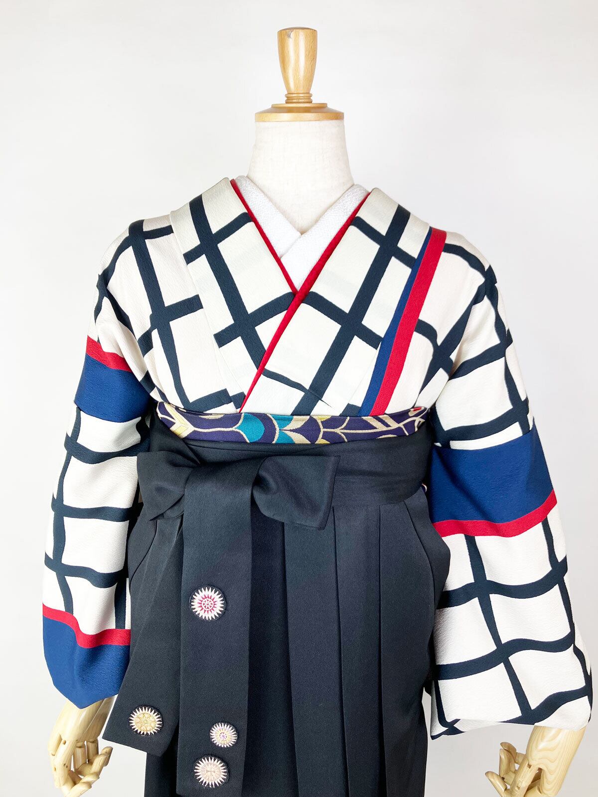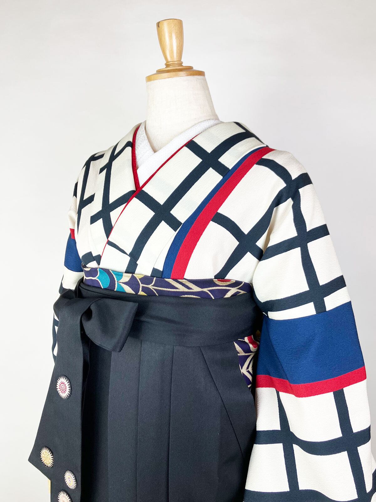 配色は柔らかなアイボリーに黒の格子、深みのある赤と紺。
