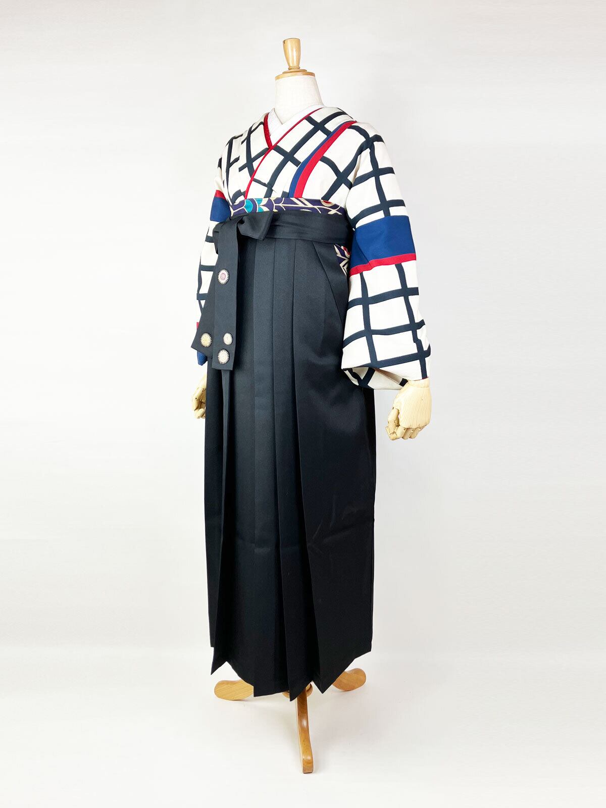 幾何学格子小紋にキリリと黒い袴を合わせました。