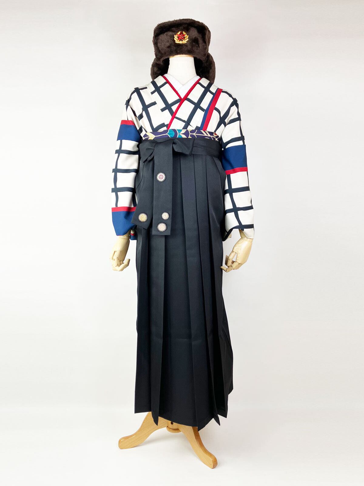 着物(小紋)・半幅帯・袴・半襦袢(白半襟つき)・重ね襟・クリーニング代が含まれます。
